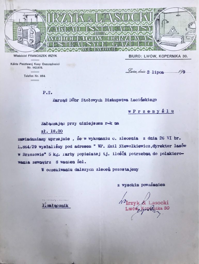 Dyrektor lasów w Brzozowie Emil Niewolkiewicz reprezentował Zarząd Dóbr Stołowych Biskupstwa Łacińskiego w Przemyślu. Z racji swojego stanowiska, dbał o bieżące kwestie dotyczące funkcjonowania uzdrowiska w Brzozowie.